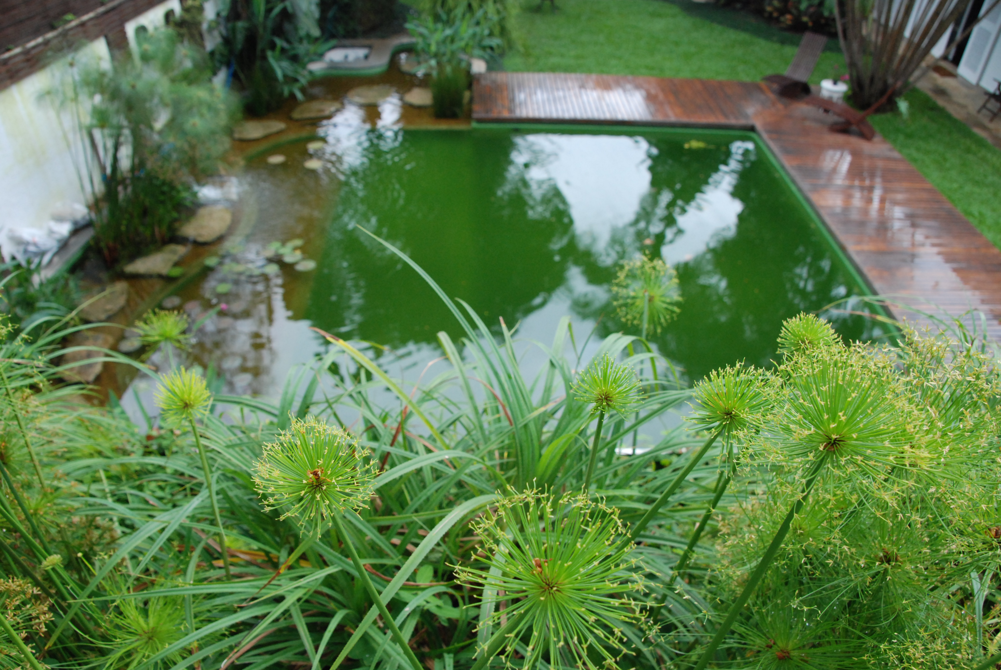 Nadar junto á peixes e plantas, sob água cristalina, é um privilégio possível nas piscinas naturais que estruturamos. O tratamento da água é realizada por um mix de processos físicos, com o uso de plantas que realizam a biofitorremediação, ou seja as plantas extraem do meio aquático os elementos em abundância, formando seu corpo vegetal e proporcionando o desenvolvimento em suas raízes de Biofilme de microorganismos que fazem a mineralização dos elementos orgânicos, impedindo assim o desenvolvimento de algas e de organismos patogênicos.